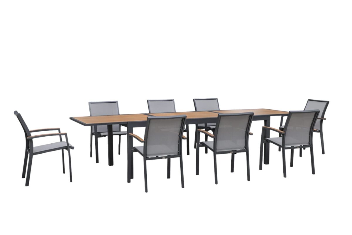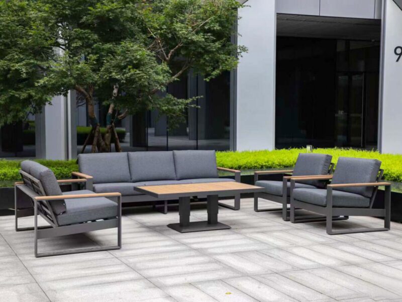 Oslo Outdoor Lounge Collection – Aluminium Corner Sofa Set with Adjustable Table | Natural Wood-Look Finish Introducing the Oslo Collection,