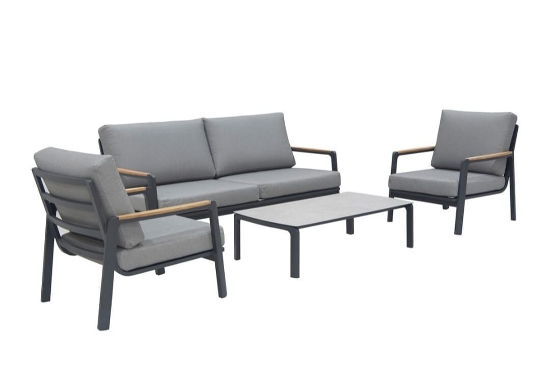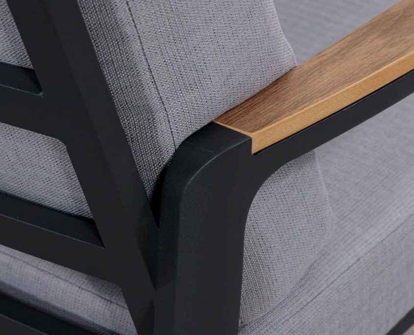 The spacious Bremen outdoor seating ensemble is ideal for hosting gatherings in your backyard. Crafted with premium aluminium framing and Polywood armrests, this set is built to last. It comes complete with cozy cushions made from UV-resistant Olefin fabric with zippered covers and high-density foam for long lasting comfort.