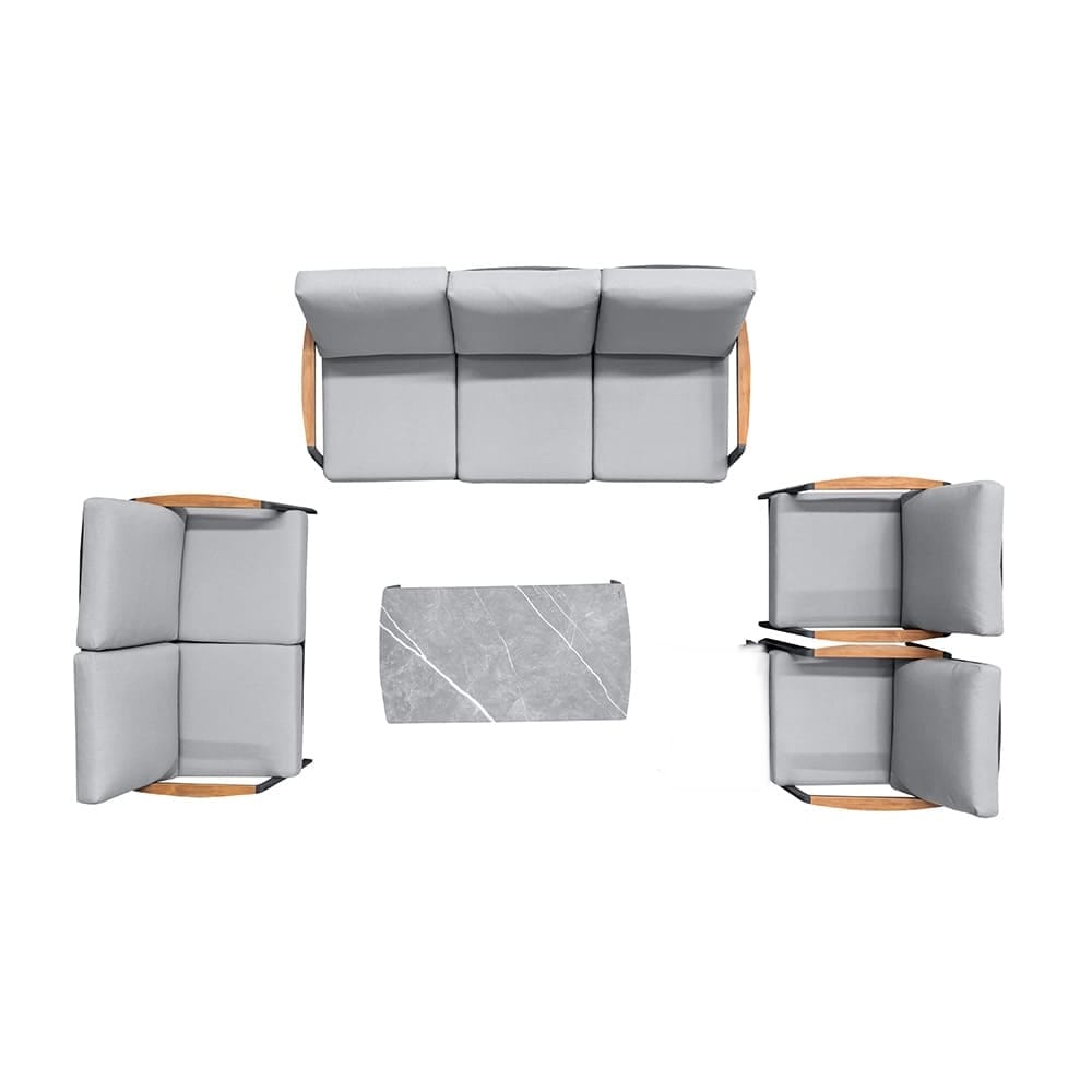 Durable Materials: Powder-coated aluminum and natural teak wood for enduring outdoor use.
