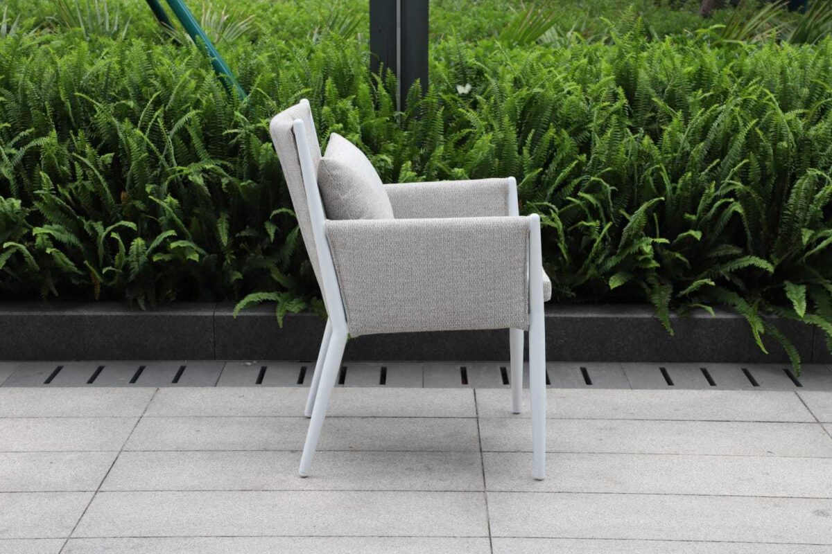 Crafted with strong and durable aluminum, the Diphano Dining Chair is built to last. Its sturdy construction ensures that you and your loved ones can enjoy countless meals. Diphano dining chair is also topped off with a sleek white powder coating, giving it a modern touch that will elevate the look of any dining space.