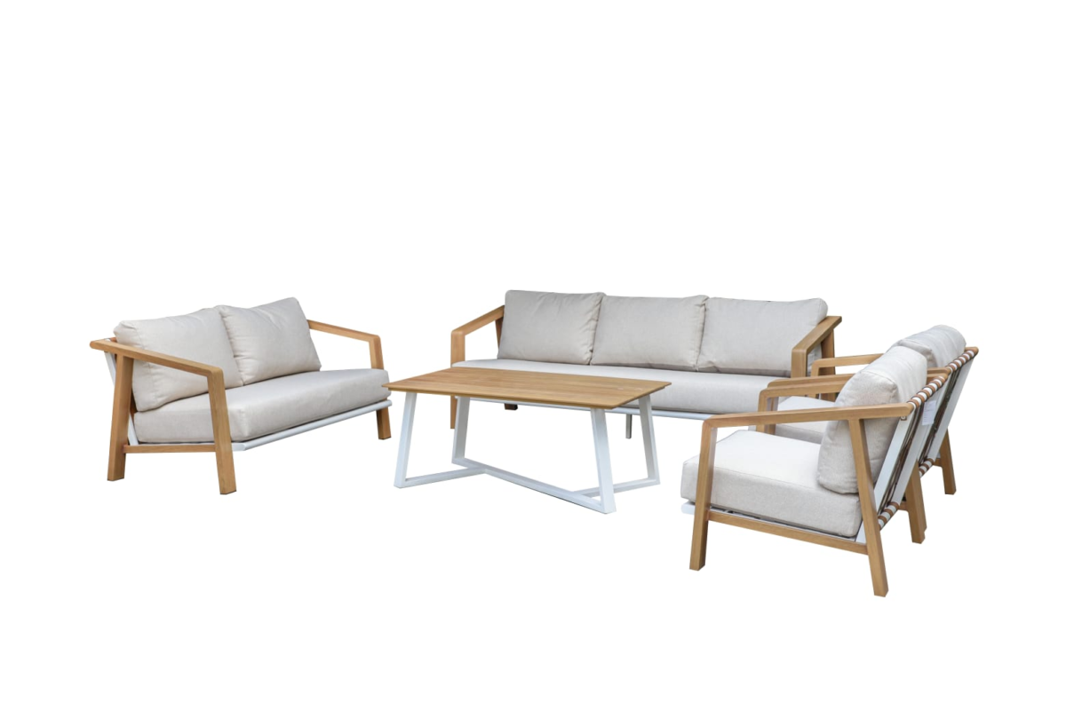 Elevate your outdoor living with the Miami Lounge Set, where contemporary design meets lasting durability. Expertly crafted from premium aluminium with a stylish wood-effect thermal print, it delivers the natural warmth of wood paired with the strength and resilience of metal. Built to endure all weather conditions, this set promises enduring elegance and performance year after year.