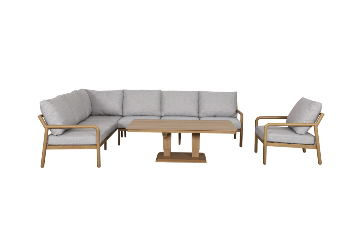 Oslo Outdoor Lounge Collection – Aluminium Corner Sofa Set with Adjustable Table | Natural Wood-Look Finish