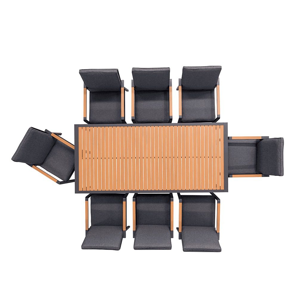 Starting with the material, the use of power coating aluminum with a thermal cover wooden look effectively combines the visual appeal of wood with the practical benefits of aluminum. This provides an attractive and durable option for outdoor furniture, with the added advantage of requiring minimal maintenance. The bold and courageous look of wood, coupled with the ease of upkeep, makes for a compelling combination.